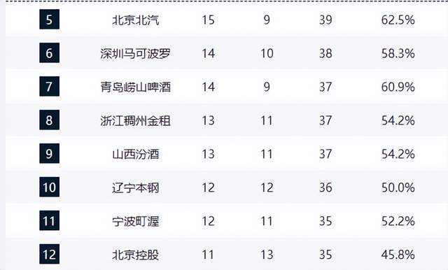 宁波12胜11负、北控11胜13负、广州11胜12负,季后赛边缘厮杀惨烈。